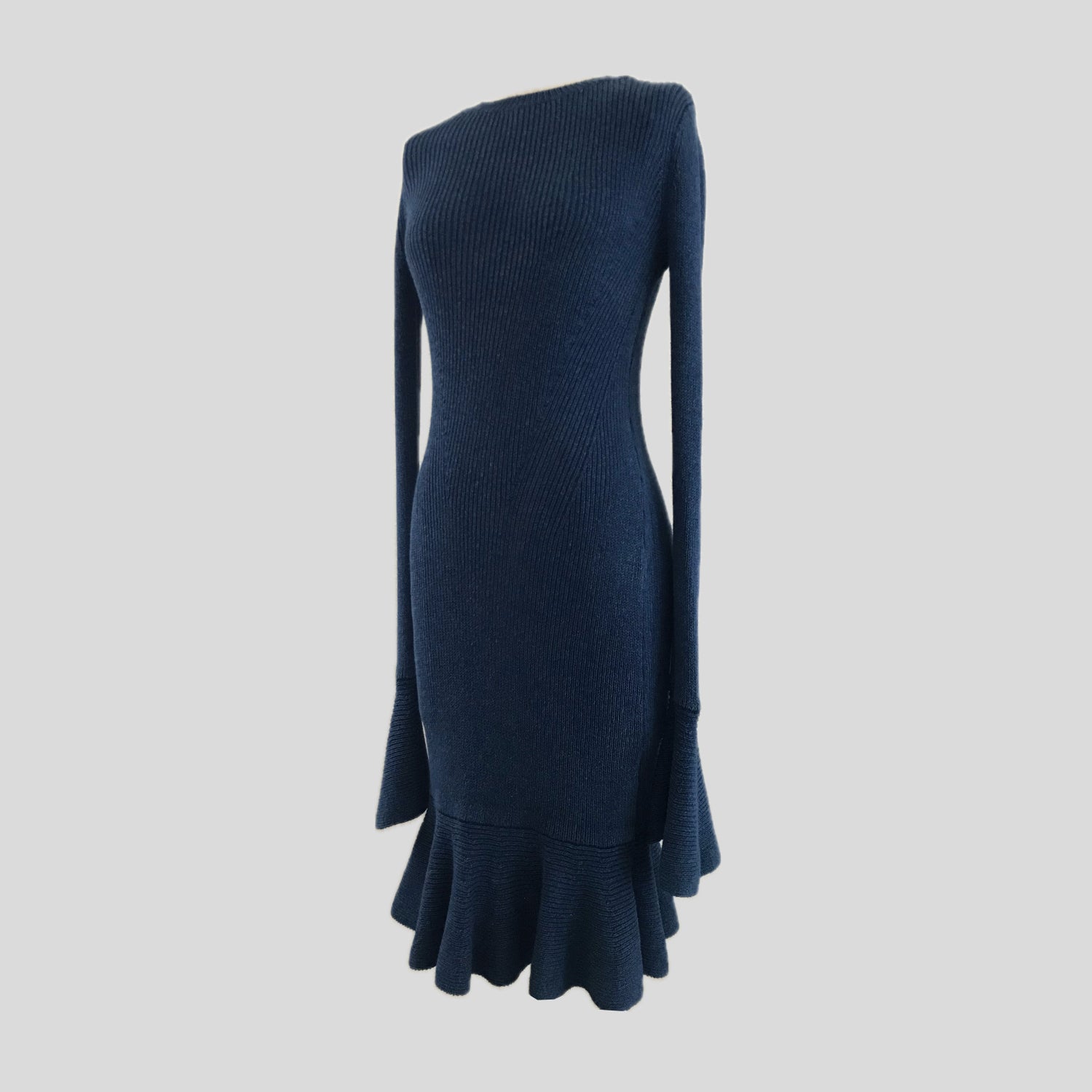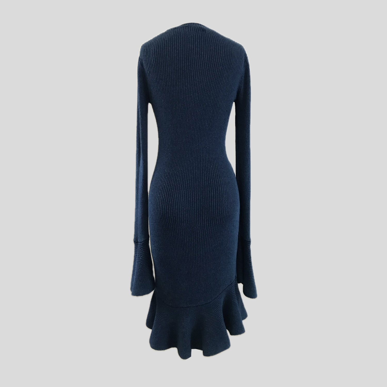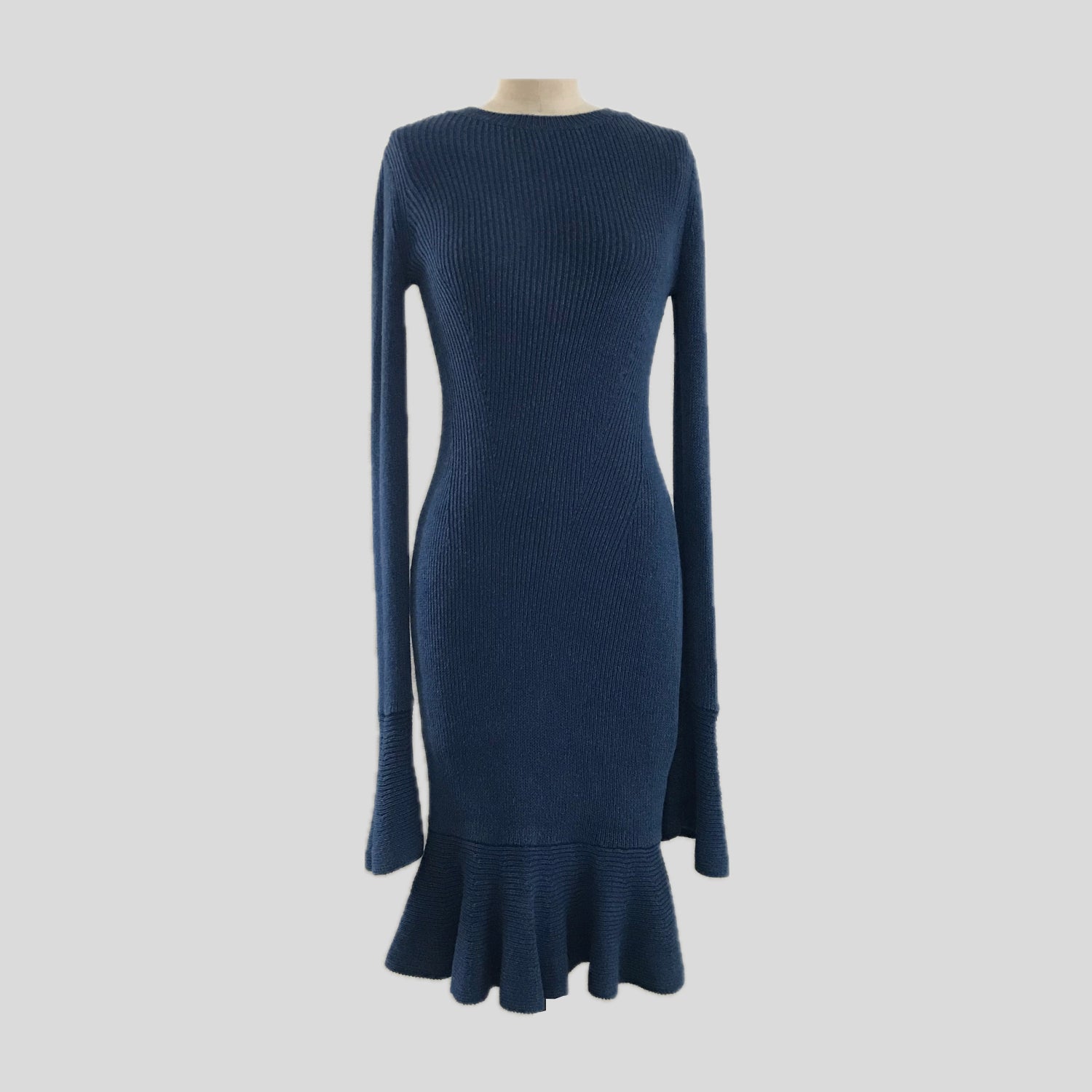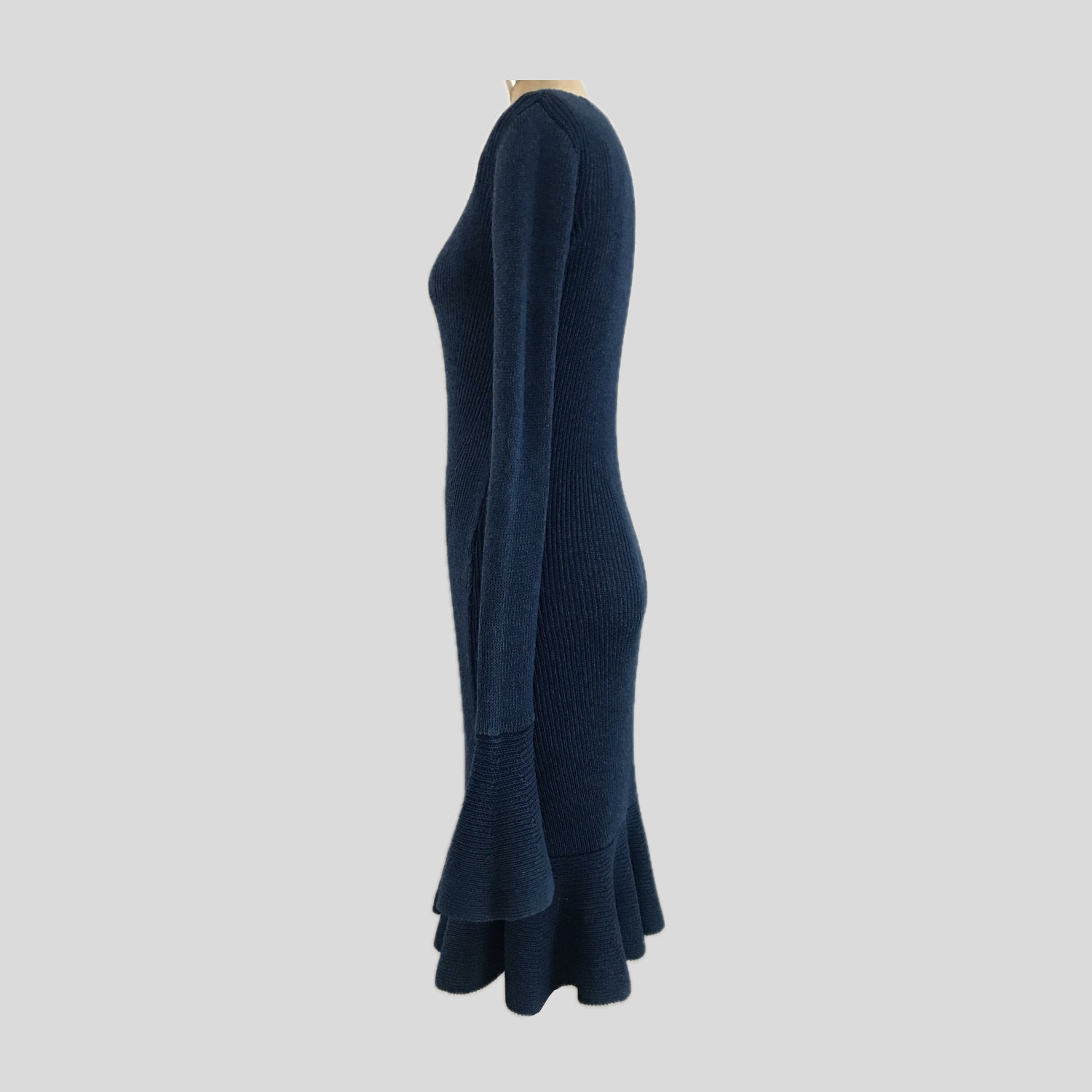 Intermix Blue Ribbed Knit Ruffle Midi Dress