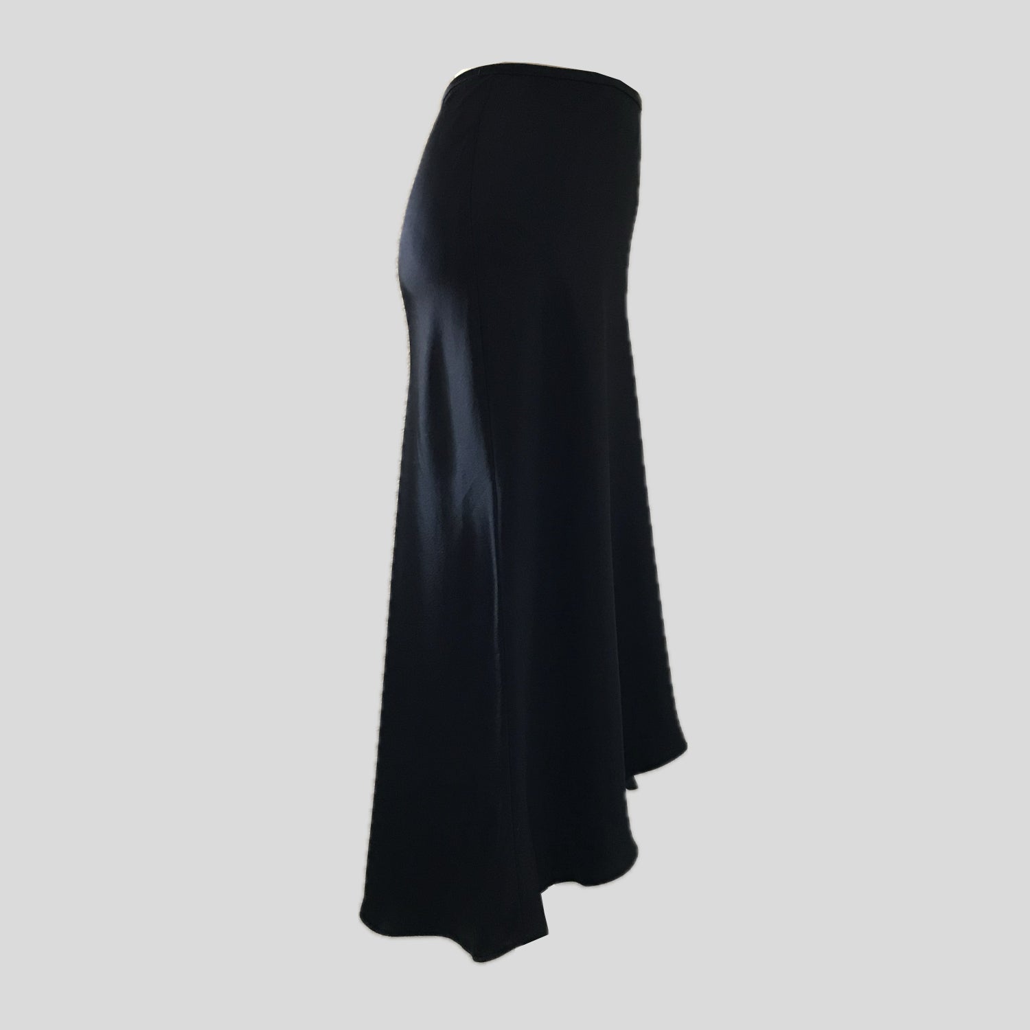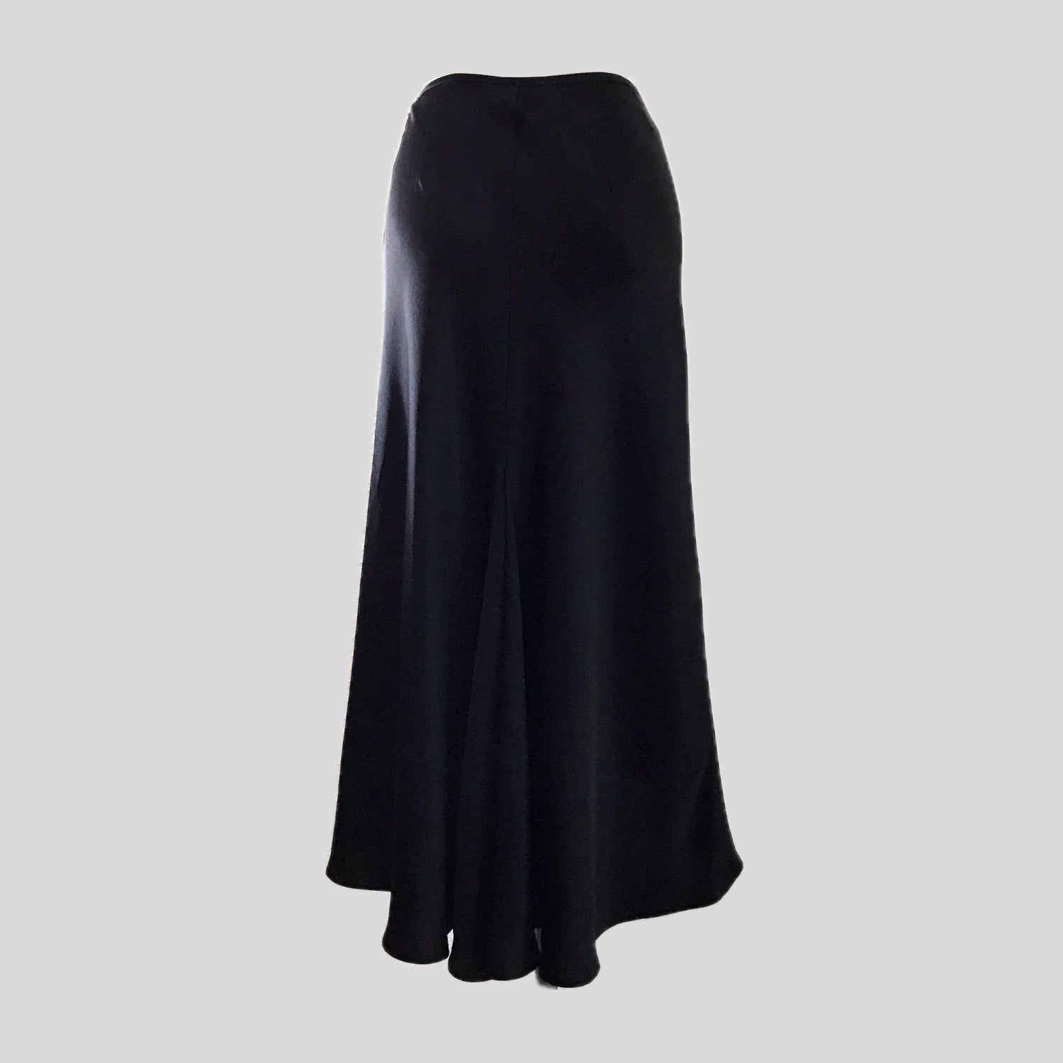 Vintage 1990s ABS Allen Schwartz Black Satin Minimalist Chic Midi Skirt